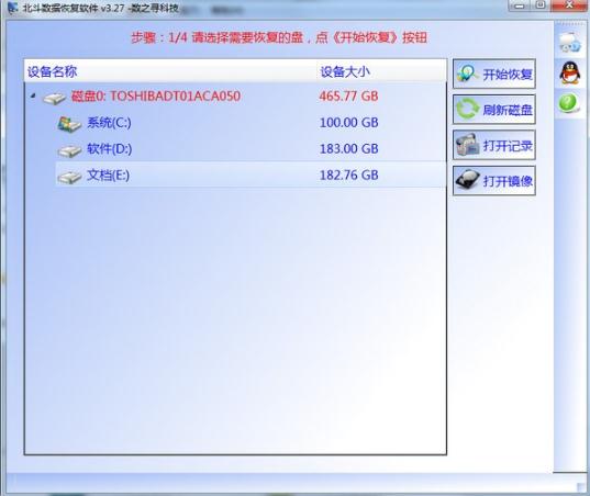 1. 打开软件后,选择需要恢复的盘,点《开始恢复》