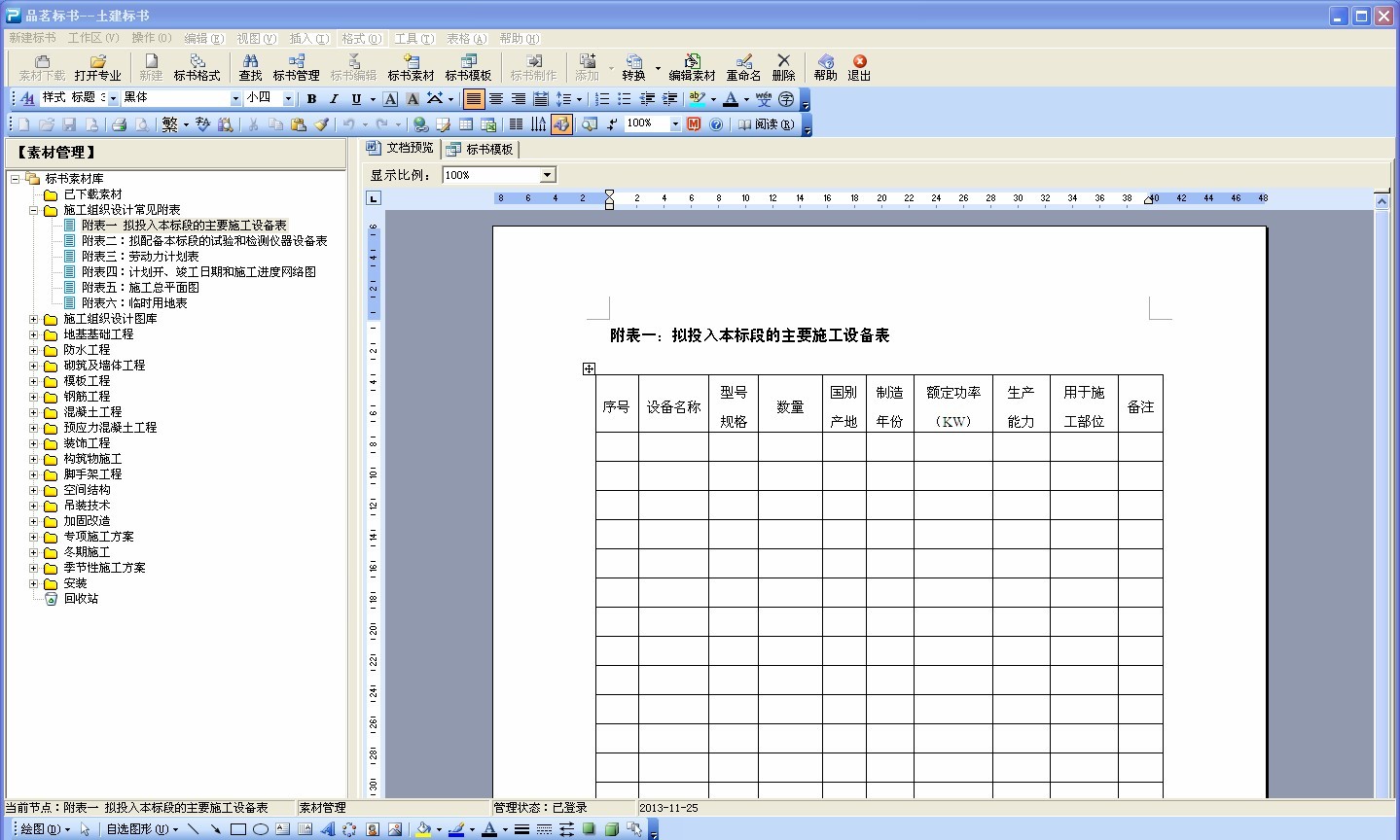 品茗标书制作与管理软件是一款集技术标标书制作与标书管理功能于一身的专业软件,内置模板来自于各大企业的实际工程。内含土建、市政、装饰、水利水电、园林绿化、钢结构、交通运输、铁路隧道和其他九大模块,可快速编制精美规范的技术标。