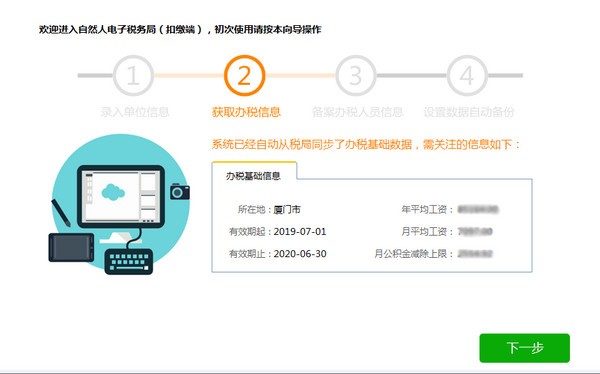 系统自动从税务机关端口获取最新的当地年平均工资、月平均工资以及月公积金减除上限等办税基础信息。