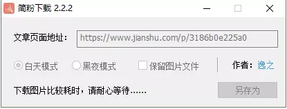 简粉下载是一款可以将简书上的文章保存为HTML文件的Windows软件,图片内嵌于文件中,字体大小、颜色、行间距、段间距、图注、分割线等一切排版风格与简书web端保持一致,与简书一样提供「白天模式」和「黑夜模式」两种阅读体验