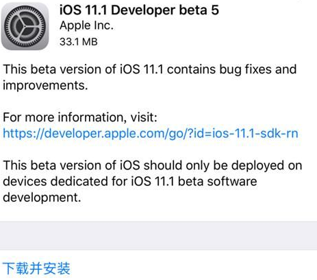 苹果还在今天更新了MacOS High Sierra 10.13.1开发者测试版以及tvOS 11.1的第四个测试版,第五个公测版ios11.1也一并更新。