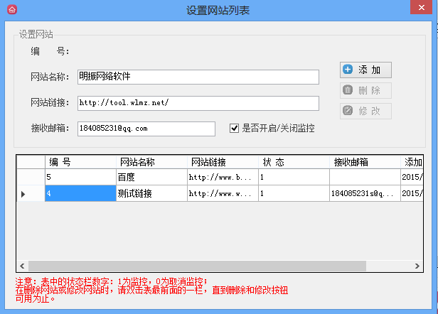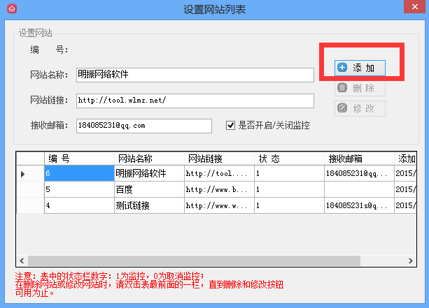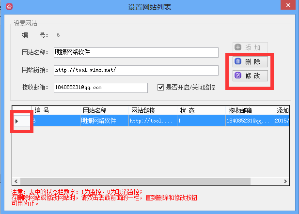 第四步. 遇到需要修改或者删除的网站,双击点击网站对应的编号区块,点亮删除或者修改按钮,则就可以实行操作。如图:
