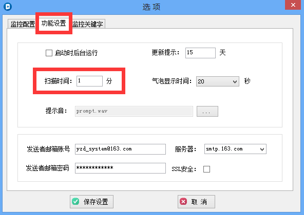 1. “扫描时间”功能可以根据网站需求监控,最短一分钟,