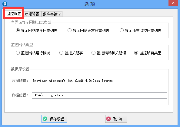 3. “数据库设置”则表示的是监控日志数据库的位置。