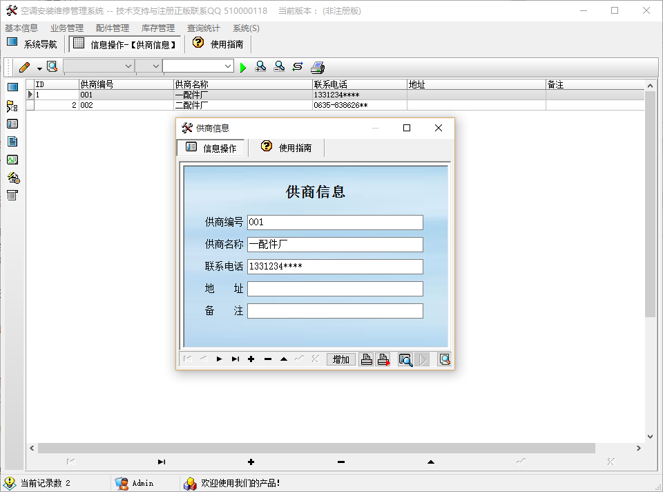 是一套对空调安装维修业务、成本、收入和利润进行全面管理的系统。