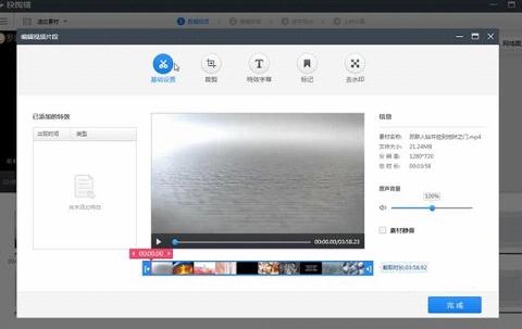 3.编辑支持基础设置,裁剪,特效,标记,去水印等功能