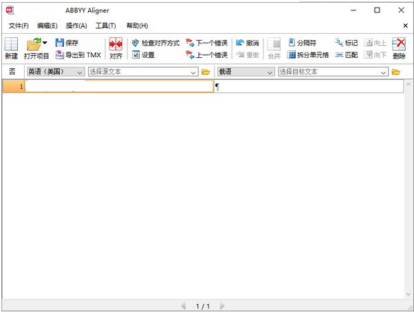 ABBYY Aligner是ABBYY(泰比)推出的一个双语对齐工具,即计算机翻译辅助软件,用于辅助用户使用电脑进行双语对齐翻译,与其它同类软件相比,ABBYY Aligner可以选定单元格进行批量对齐,还可以一键去除所有空行,可以选定多个单元格进行操作,可以对文本进行“查找和替换,效率更高!