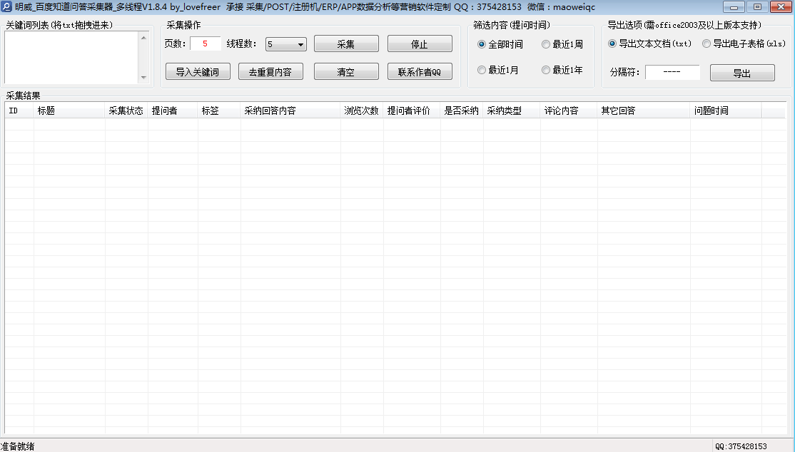 明威问答采集器是一款实用的百度知道问答采集工具,工具可以让用户可以快速的采集百度知道的问答,然后把这些问答批量导出,给营销人员工作带来便利,需要的朋友欢迎下载使用。