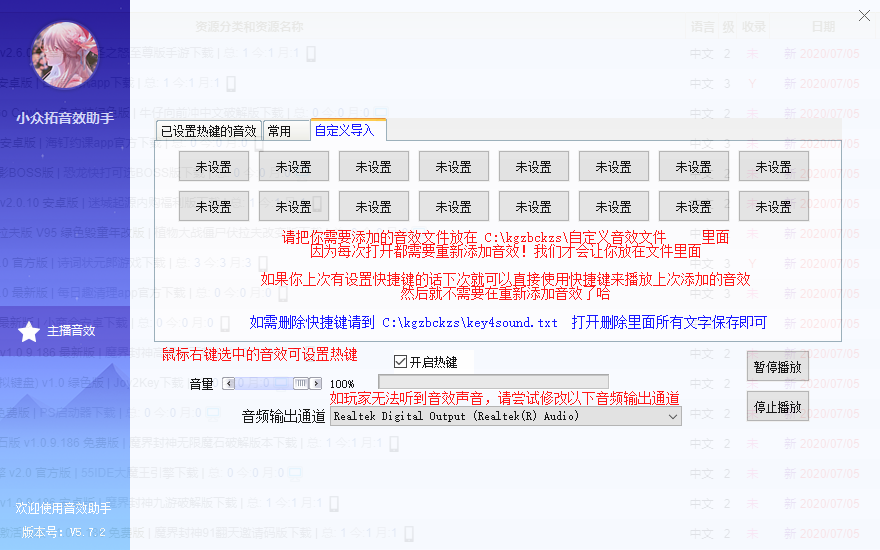 2.支持快捷键设置,只有轻轻一点键盘即可播放指定音效