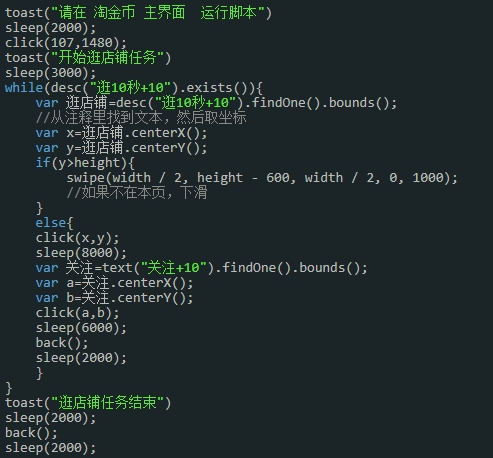 看到一些朋友求AutoJS关于淘金币任务的源码。