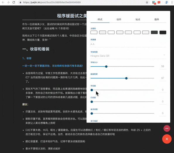 更符合 中文阅读 习惯的设置,包括:字间距 行间距 等 以及 灵活的自定义 ,详细请看 自定义样式
