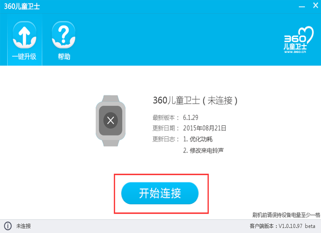 打开刷机工具,连接手表和电脑,点“开始连接”,如下图: