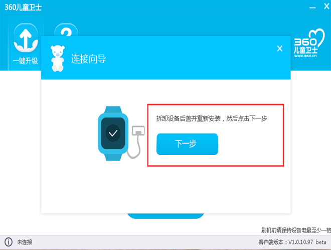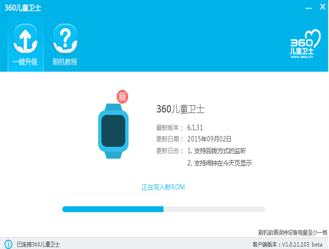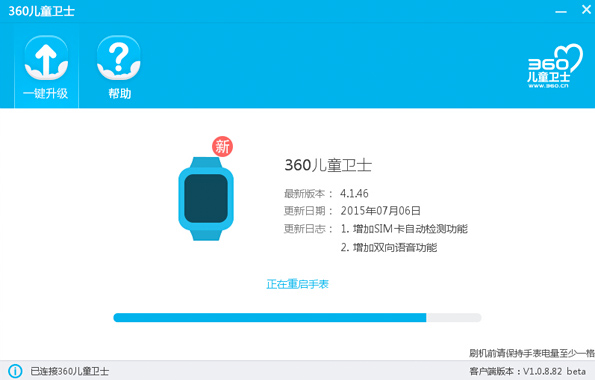 360儿童卫士固件工具,可以帮助小朋友们将你的360巴迪龙手表、手环连接到电脑上,进行快速的系统升级,安全有保障而且最官方哦!