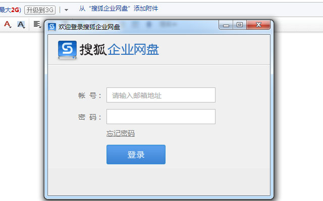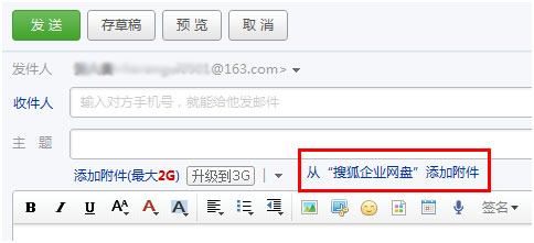 2.如果您已有搜狐企业帐号,登录搜狐企业网盘扩展程序,在163邮箱和qq个人邮箱写信页添加附件时,就可以直接从您的搜狐企业网盘中选取任意文件作为附件,方便快捷
