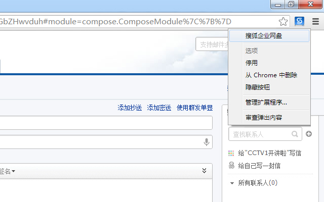 搜狐浏览器插件现支持谷歌、搜狗、360等浏览器,安装后可以在浏览器上进入163、qq等邮箱,在添加附件时可以直接从你的搜狐企业网盘中选取某个文件以附件的形式加载到邮件中,可以大大提升用户的办事效率。