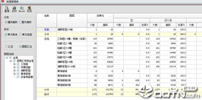 软件采用图形化管理模式,房源位置及使用等情况一目了然,通过颜色即可区分出房源是处于空置状态还是处于出租、维修等状态。除此之外,软件中还会以列表的形式展示空置房源信息、已租房源信息、维修状态房源信息及其它各房源的详细信息,高度自定义的查询条件,可分项查询,费汇总查询。