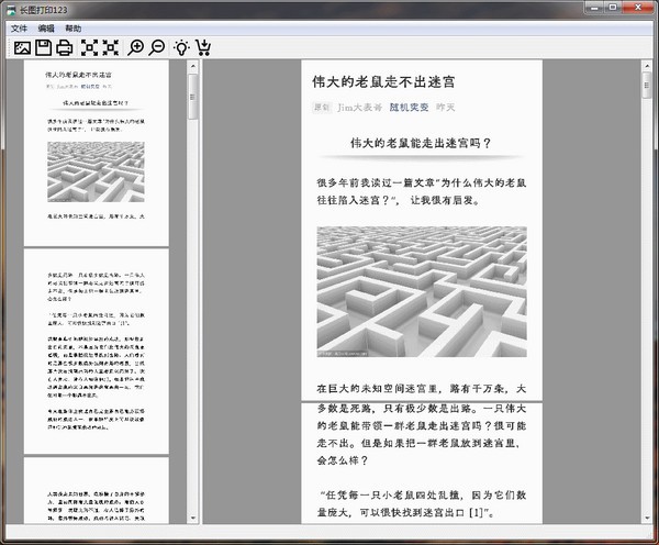 长图打印123是一款易用的分页打印长图片的软件,把手机长截屏或微博等长图片分页输出到打印机或者pdf文件,支持输出到PDF文件,方便进一步编辑。