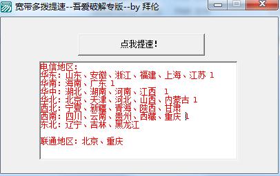 宽带多拨提速软件是一款可以让的实用软件。软件功能强大,既可以给电信宽带用户提速,也可以给联通宽带用户提速,对于上网的我们来说,网速就是一切,需要宽带提速的朋友欢迎前来下载使用。