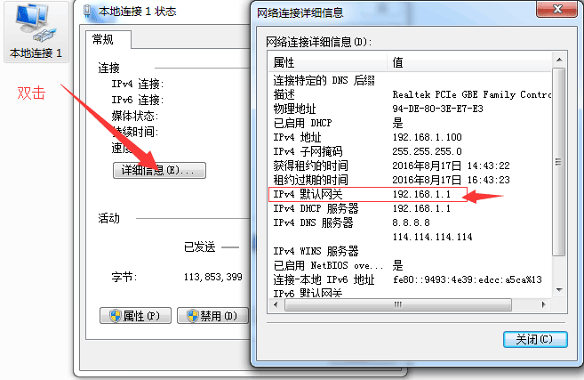 右击桌面“网络”图标->属性->更改适配器设置(xp没有这步),在网络连接里面,双击“本地连接”->详细信息-》找到“IPv4 默认网关”对应的IP地址,一般是192.168.1.1或者192.168.0.1