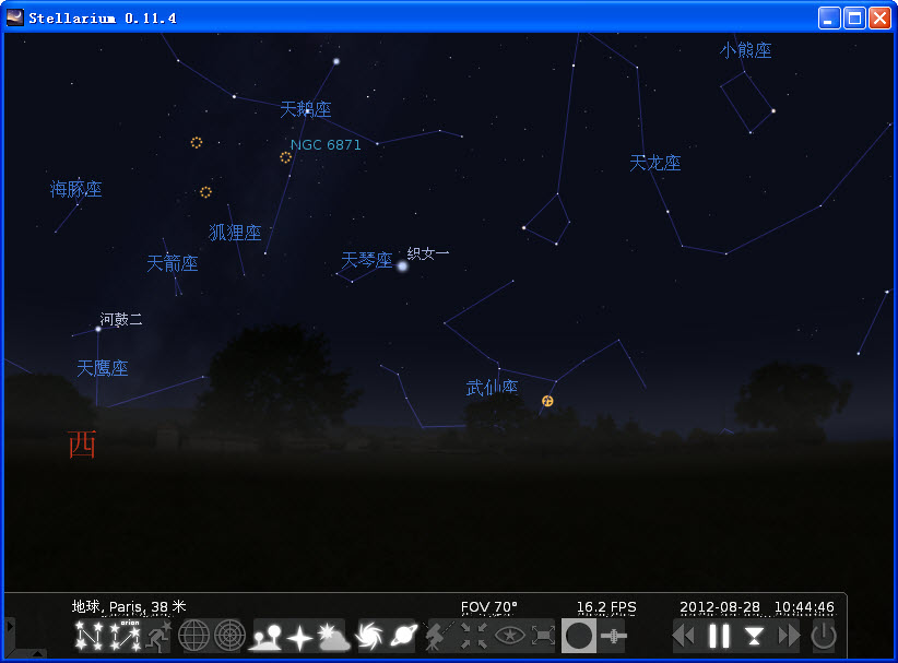 使用鼠标和键盘可以转动 Stellarium 天幕。