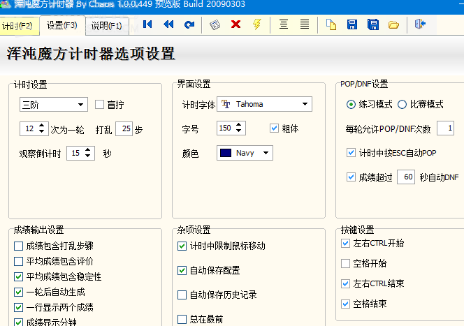 混沌魔方计时器是一款完全绿色免费的电脑版魔方计时器软件,这款魔方计时器软件在魔方计时的方面上功能及其强大,是一款用了就不会再去选择其他魔方计时器的优秀软件。