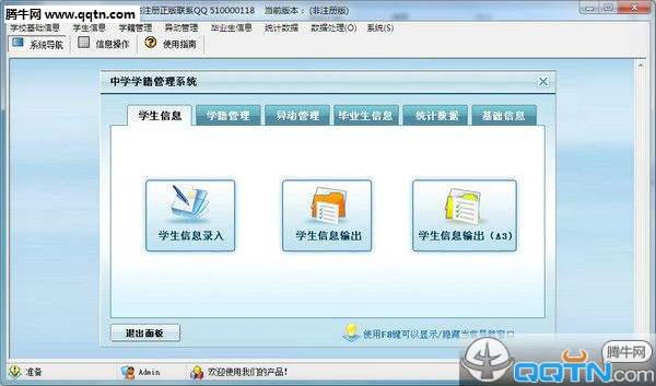 中学学籍管理系统是一款专为学校管理人员推出的中学学籍管理软件,这款软件功能强大、专业实用,软件专门为省、市、县各中学量身订做,能够为他们提供各班人数统计、异地情况统计、初中毕业人数统计等实用功能。软件方便,可以将各种资料打印成自由设定的表格,需要的话可以来下载。