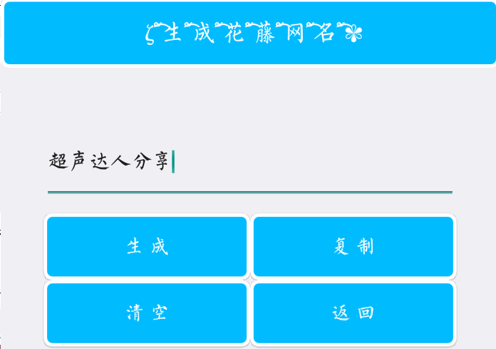 3、输入自己的网名,点击生成,再复制到QQ、微信,编辑自己的个人资料即可!