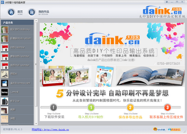 软件可支持相册、影楼相册、台历、挂历、掌中宝、lomo卡、明信片、杯子、版画、、扑克牌、Tshirt等的设计工作