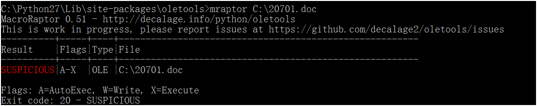 结果为疑似SUSPICIOUS,权限AWX中没有写权限(w)A为自动执行权限,X为可执行权限