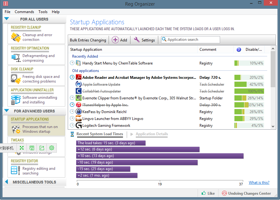 。提供对所有自动启动程序的快速访问,使用Reg Organizer,您可轻松检查、编辑或禁用此类程序。