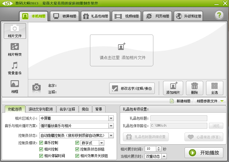 在自制的家庭数码相册基础上,经过简单设置,即可自动生成类似的移动数码相册,既可用于分类收藏您的照片,也可方便地作为礼物分发给他人,接收者无需安装,即可与亲朋好友分享动感的数码礼品!
