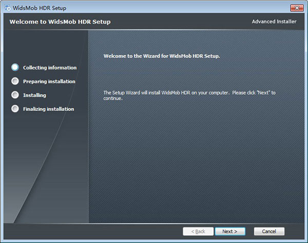 1、在本站下载并安装,双击“widsmob_hdr_win.exe”运行,进入安装向导,点击下一步。