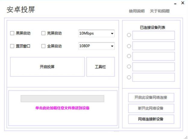 无线投屏:需通过USB将主页面右下方转换为无线连接,此时可以断开数据线开启无线投屏;