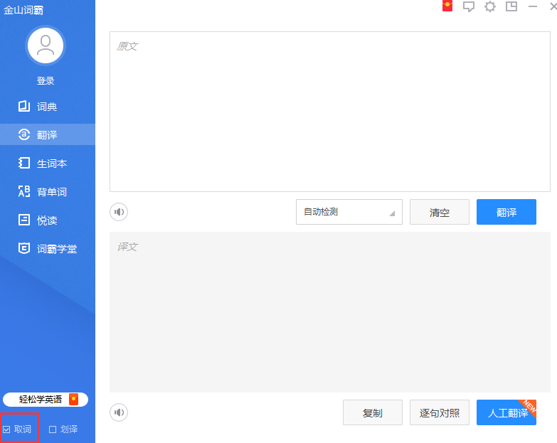 一、打开金山词霸,勾选页面左下角的【取词】选项。
