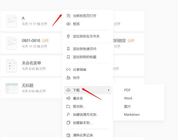 方法一:在文档详情页,点击文档右上方的(竖三点)按钮,然后选择「下载」;