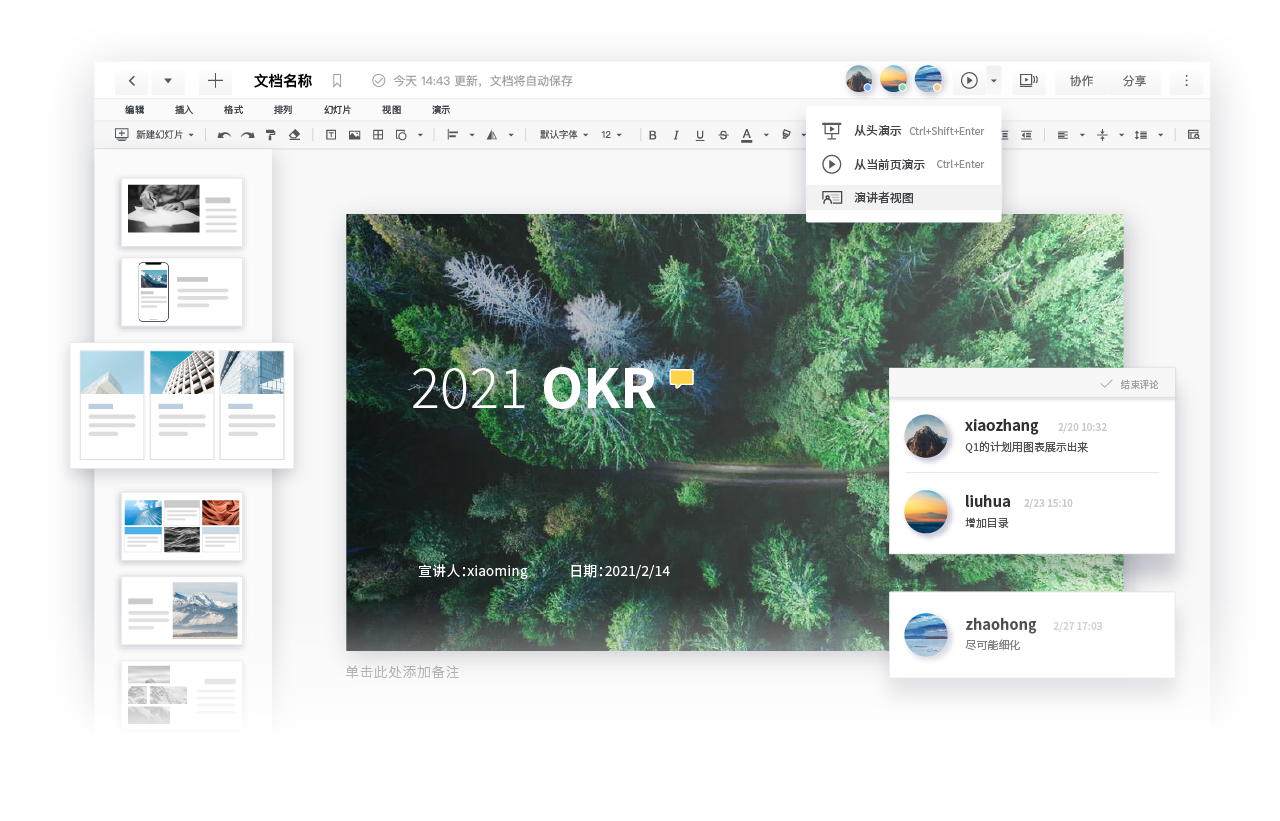 您可以邀请他人与您共同编辑同一个文档或表格,并通过浮动的头像实时查看其他成员的编辑动态。