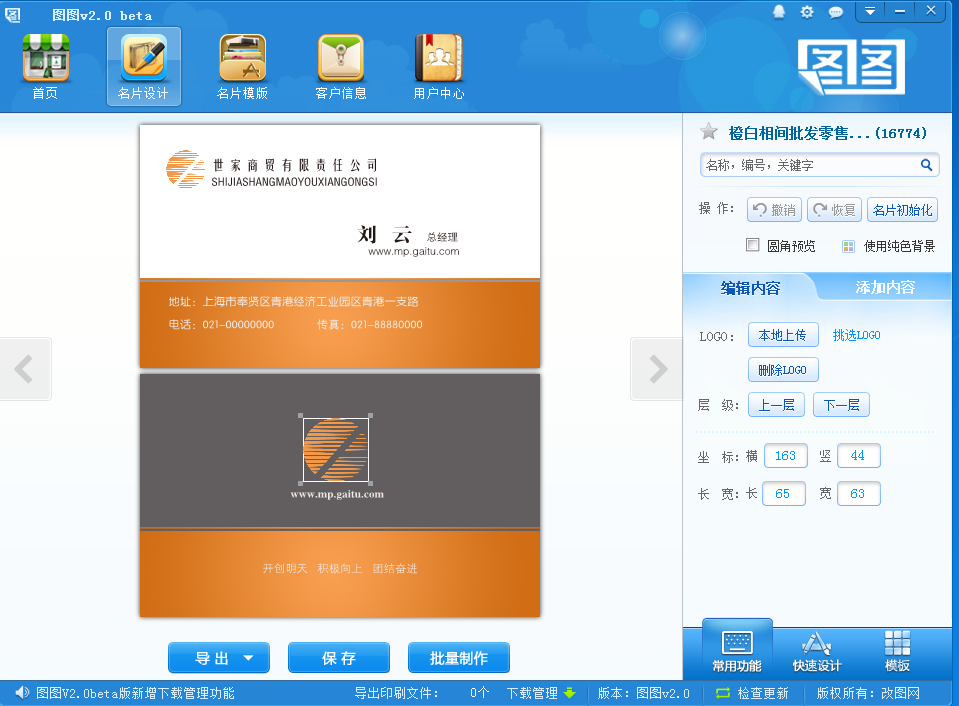 只需会打字,便能设计出独特的名片,无需任何设计经验,真正实现省时、省力、省钱的理想选择。