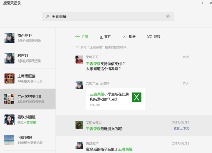 首先,新增了本地聊天记录的搜索功能,并按照群组/好友、全部/文件/相册/链接等不同类别进行展示。同时,还可以根据文件/图片与视频/链接等不同类型,轻松查看与好友之间的聊天信息。