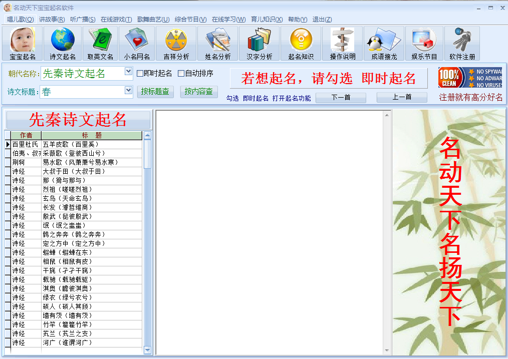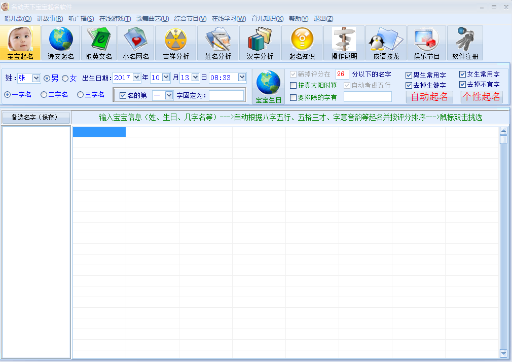 此外,名动天下宝宝起名软件还提供丰富的育儿知识和各类娱乐节目,持续更新,让您时刻掌握最新的育儿理念。名动天下起名软件,汇聚千万佳名,为宝宝开创辉煌未来。