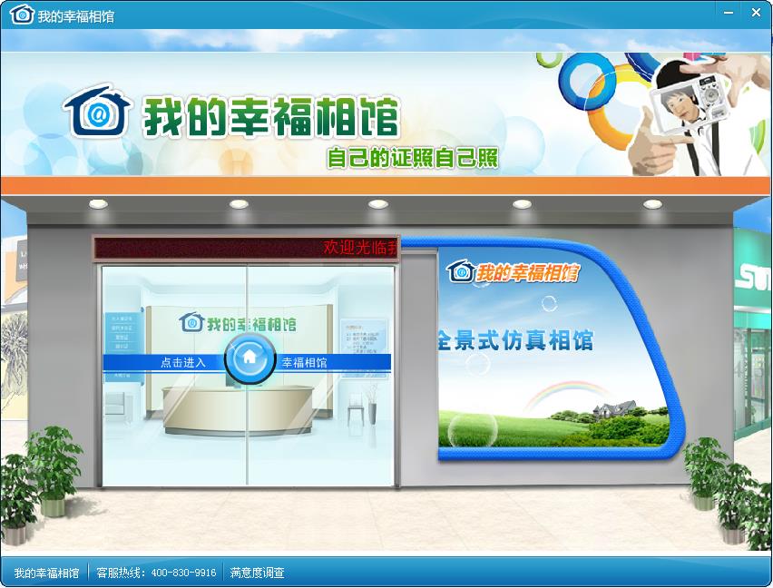 “我的幸福相馆”精心模拟了传统照相馆的服务场景,运用现代科技构建了网络仿真相馆。以“我的幸福相馆”为广大用户提供相片自拍、管理、冲印及制作等个性化便民服务,突破了传统相馆服务的局限,倡导一种“足不出户”的绿色低碳生活方式。