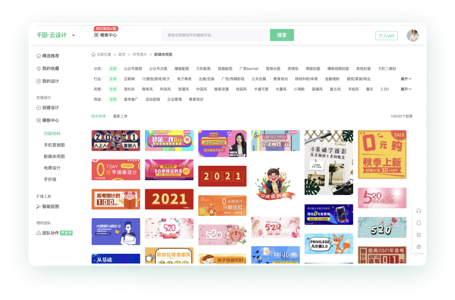 云设计提供海量可商用的免费设计模板,涵盖平面印刷、线上宣传及电商设计等多种需求场景,满足线上线下各类品牌与宣传活动。用户只需通过简单的拖、拉、拽操作,即可轻松完成专业水准的设计作品,数分钟内便可打造出一系列精美的设计稿。