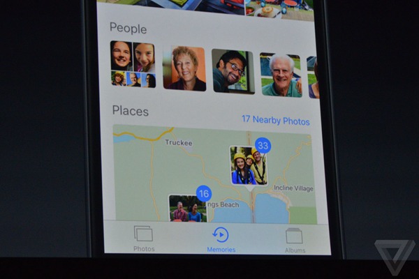 iOS 10的相册应用新增智能脸部识别和场景识别功能,支持高级搜索,并能自动整合相似元素的照片,提供一个记忆功能面板,基于地图或不同身份进行整合展示。此外,还新增了Live Photo编辑功能。