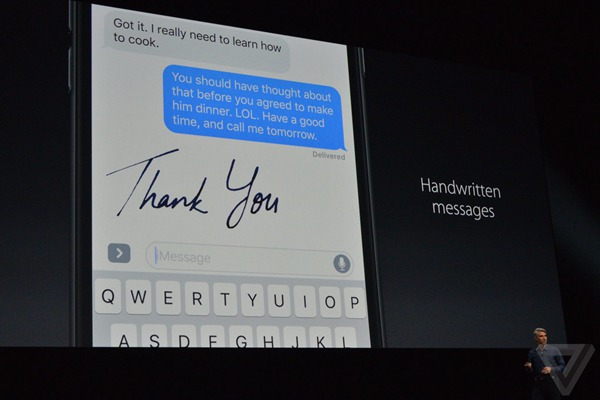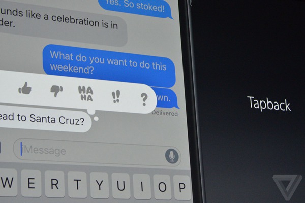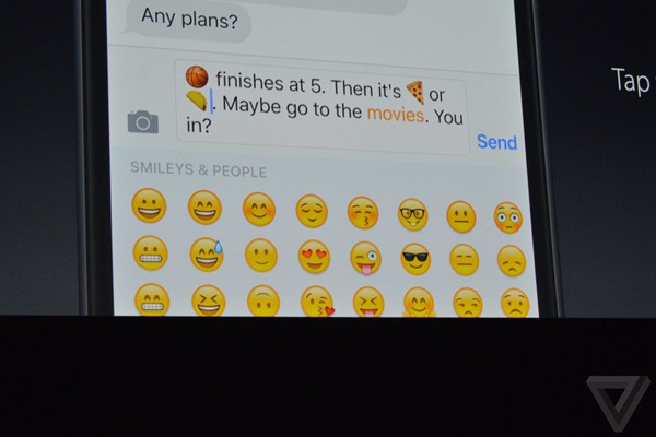 iOS 10能够自动识别可被emoji表情替换的词语,点击便可自动替换为emoji表情。iMessage支持使用触控板发送信息,Apple Watch新增的触控板同样可进行类似操作;同时,iMessage支持通过Apple Music播放音乐,并正式向第三方应用开放,提供独立程序抽屉以便在iMessage中调用,消息类型不再局限于文本,用户还可发送视频、图片、音乐、各种动图、支付信息,并可添加多样的动态效果;还支持发送手写信息。