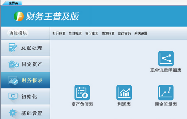 账簿报表:包括总账、明细账、数量金额总账、数量金额明细账、多栏式明细账、凭证汇总表、科目余额表、试算表、核算项目总账、核算项目明细账及核算项目余额表;