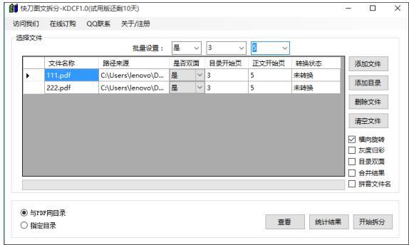 1、在进行双面拆分时,需输入PDF文件的起始目录页及正文开始页,并按PDF页数进行统计;
