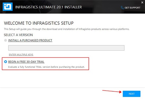 2、运行Infragistics_DevTools_20201.exe开始安装软件,选择30天试用,随后激活;