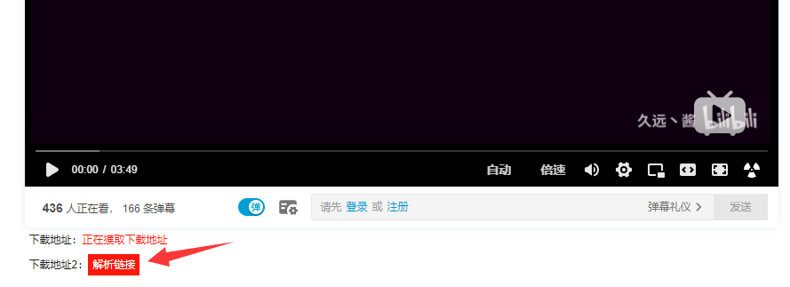 打开您需要下载的B站视频播放页面(注意:链接结尾须为bv号),在播放器下方即可见到一个【解析链接】的下载按钮。
