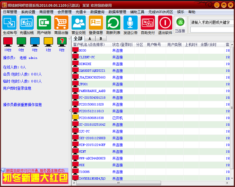摇钱树智能管理软件,专为各类网吧、学校培训机构及机房等场所量身打造,具备灵活多变的费率设置和强大的会员体系,能够设定相应的等级,并支持商品管理、自助支付、远程监控等多项功能,用户可随时查阅详尽的上机记录及充值明细,是中小型网吧智能管理计费的理想之选。