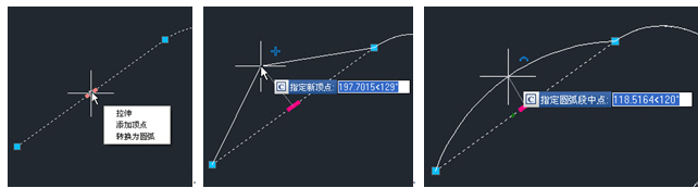 可对多段线进行添加夹点、删除夹点、直线与圆弧的转换,按CTRL键可切换编辑选项,并可调整曲线拟合的二维多段线的切线方向。