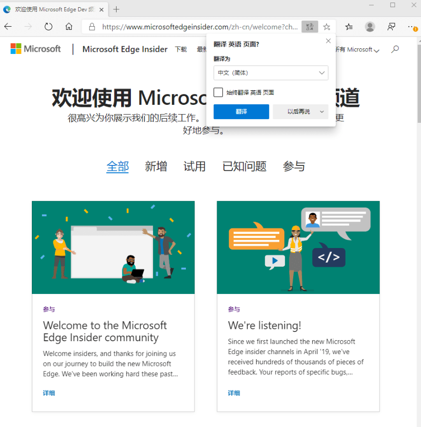 新版本的Microsoft Edge基于谷歌Chromium内核,支持全局翻译、阅读模式、第三方扩展插件以及人声等多种功能。微软计划定期更新Edge浏览器,包括每日、每周与数周一次的Canary、Dev和Beta版本更新等。